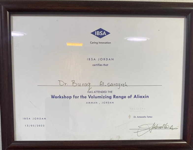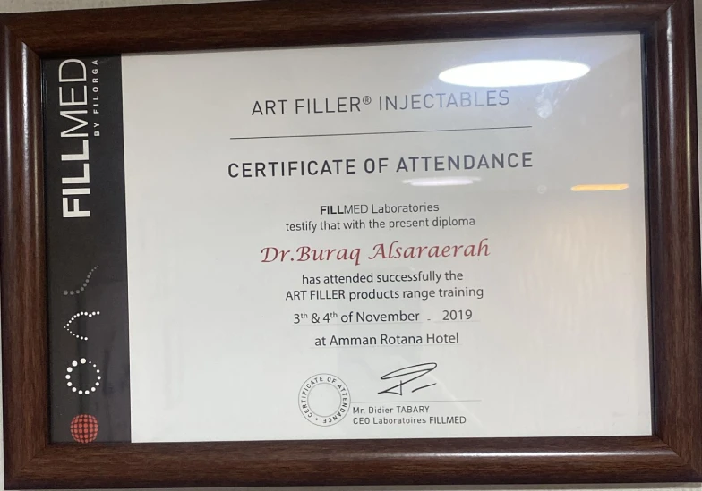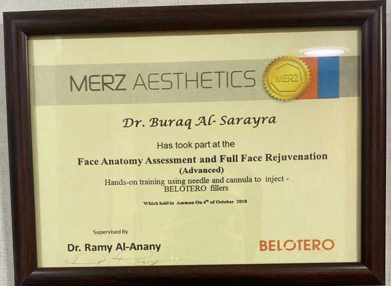 - حصلت على العديد من الدورات المتقدمة في الطب التجميلي، حقن الفيلر والبوتوكس، علاج الأمراض الجلدية لكافة الأعمار، والليزر.
